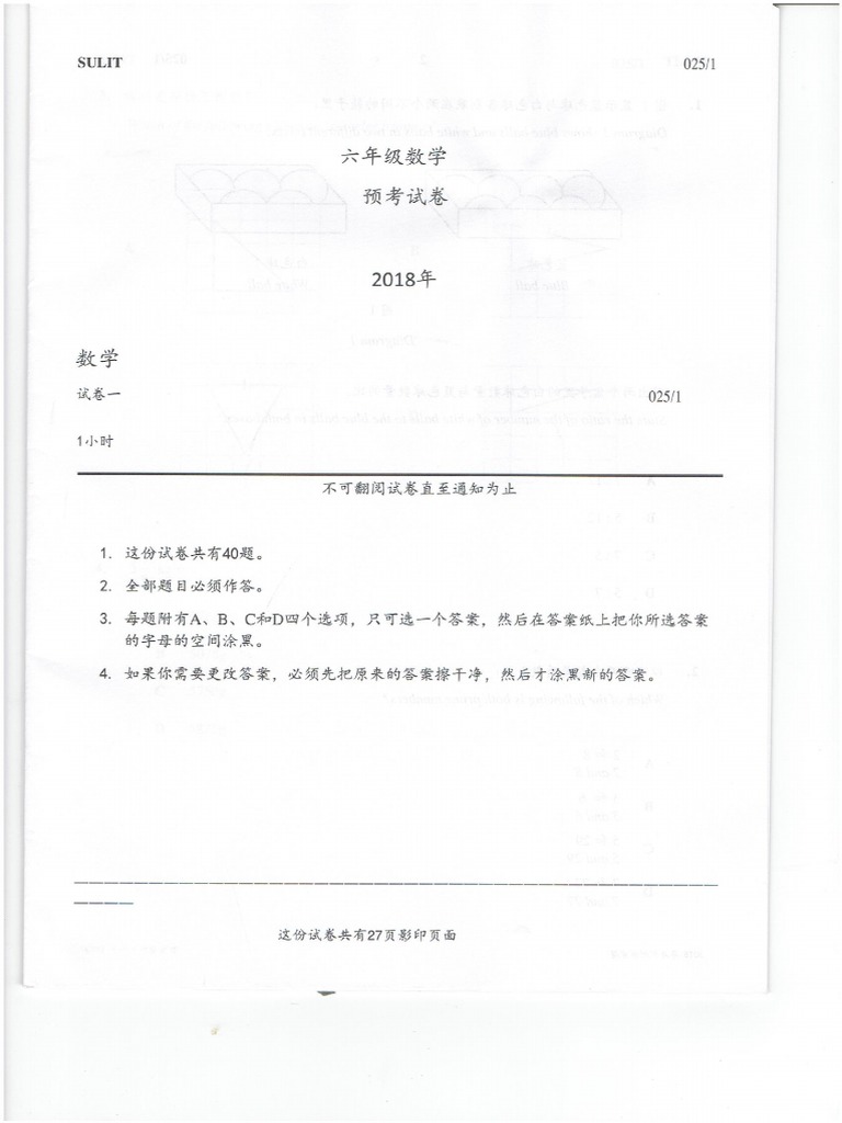 Soalan Peperiksaan Percubaan Matematik Upsr 2018 Pahang Raub Sjkc Bumi Gemilang