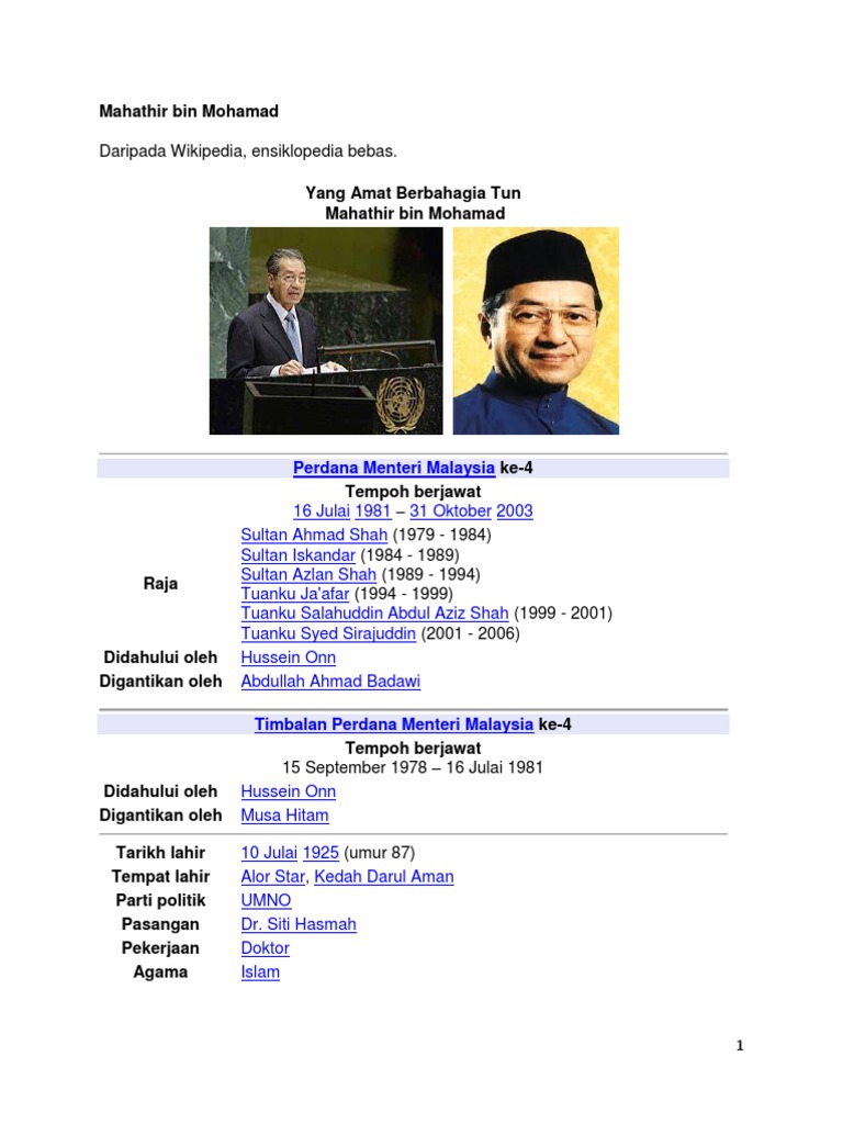 Biodata Tun Dr Mahathir Bin Mohamad Pdf