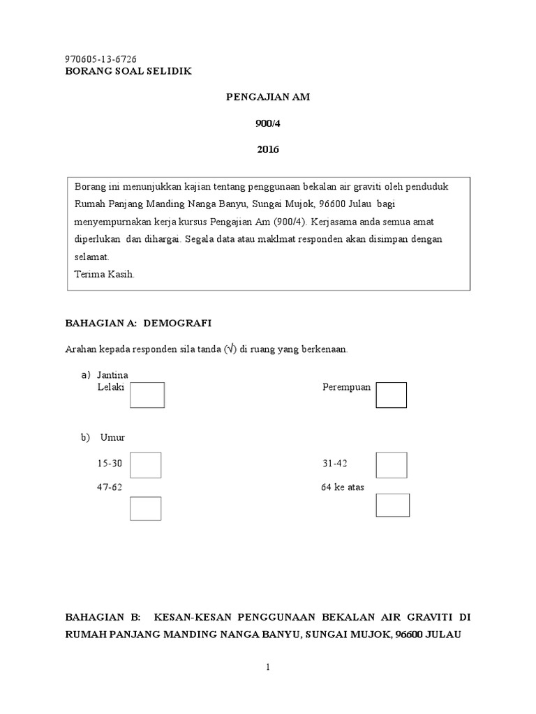 Contoh Borang Soal Selidik 1 Pdf