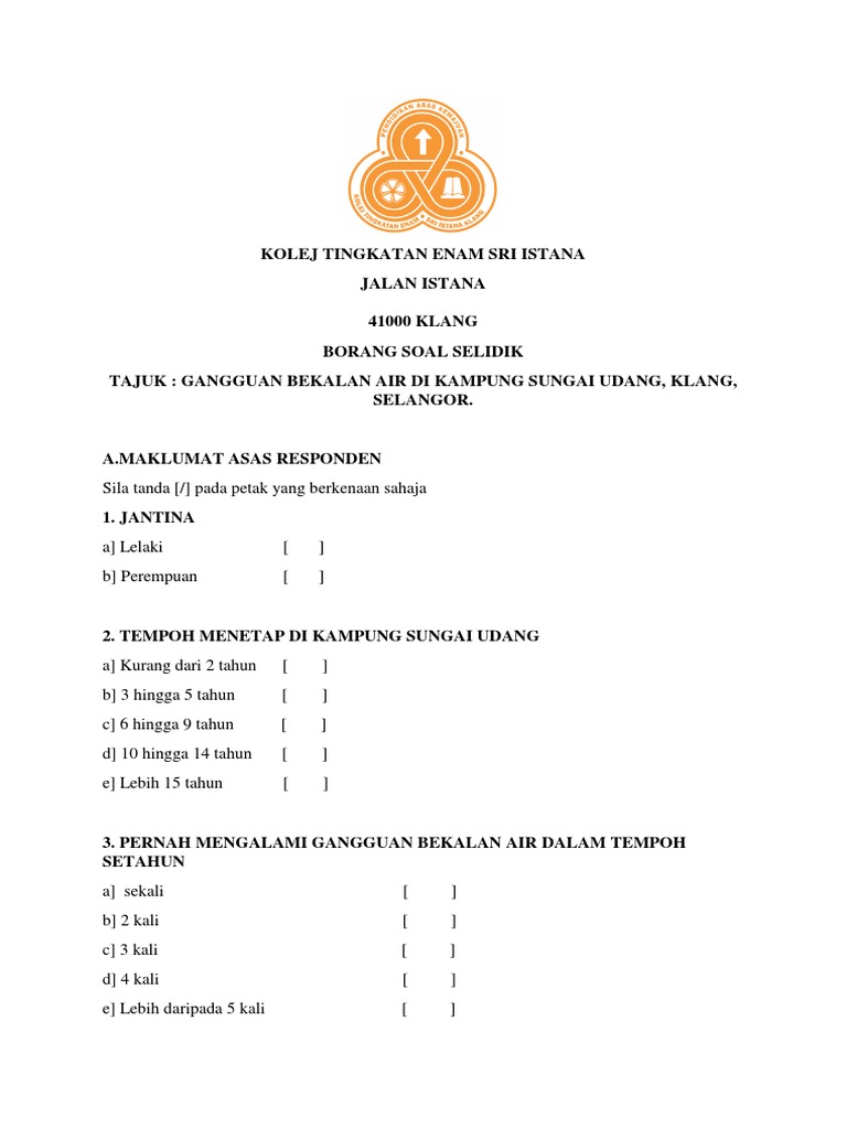 Contoh Borang Soal Selidik Pdf